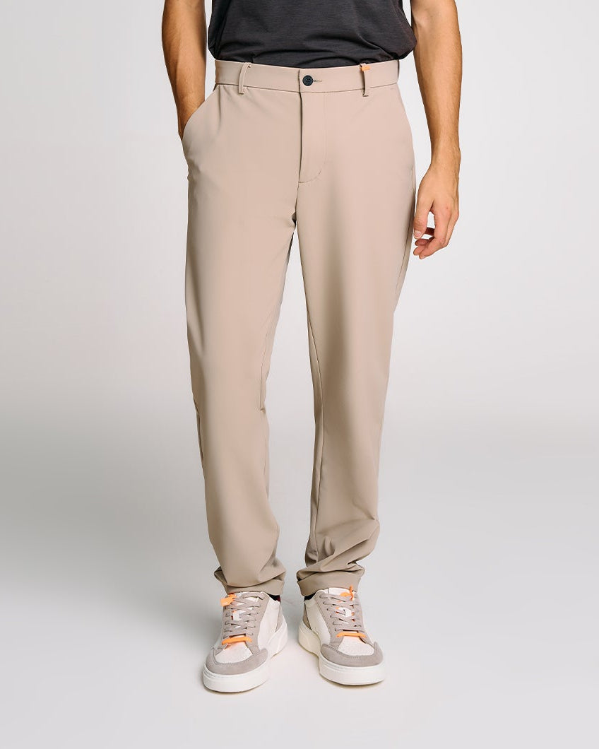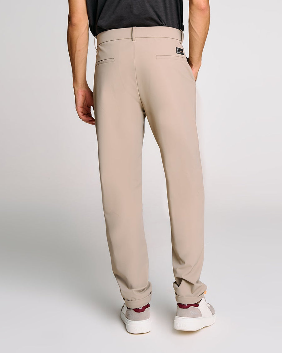 Un pantalone da uomo pensato per unire funzionalità e stile urbano. Il design pulito è valorizzato dal tessuto tecnico elasticizzato che segue ogni movimento con naturalezza. La vita elasticizzata con bottone a vista offre una vestibilità regolabile e moderna, mentre le tasche chino posteriori con zip e il discreto logo Suns completano un look versatile, ideale per la quotidianità o il viaggio.
