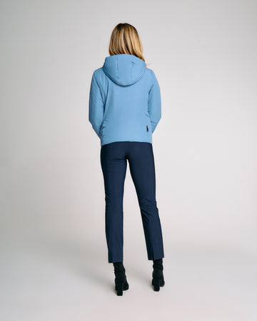 Zip frontale a doppio cursore termosaldata: look tecnico e maggiore tenuta all'acqua.
