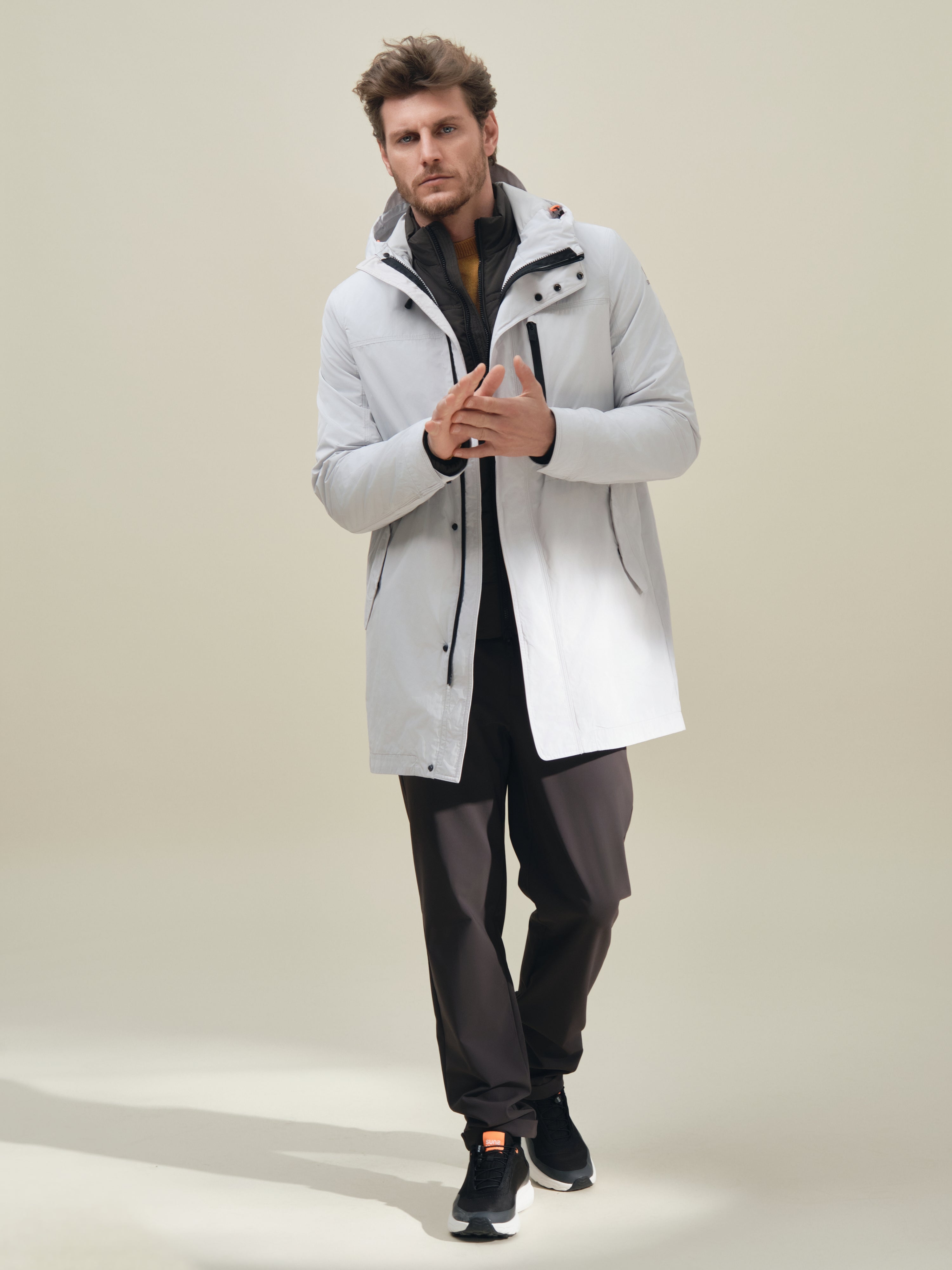 Un giubbotto tecnico da uomo progettato per garantire protezione e funzionalità durante i mesi più freddi. Il tessuto impermeabile e l’imbottitura interna assicurano calore e resistenza agli agenti atmosferici, mentre il cappuccio regolabile offre una copertura versatile. Il modello si distingue per la lunghezza parka e la zip centrale full-zip con doppio cursore che facilita i movimenti. Completano il capo le tasche laterali con chiusura invisibile e una tasca verticale termosaldata sul petto. Il dettaglio del logo reflective e la pinnetta arancione fluo sul fianco firmata Suns aggiungono un tocco distintivo.