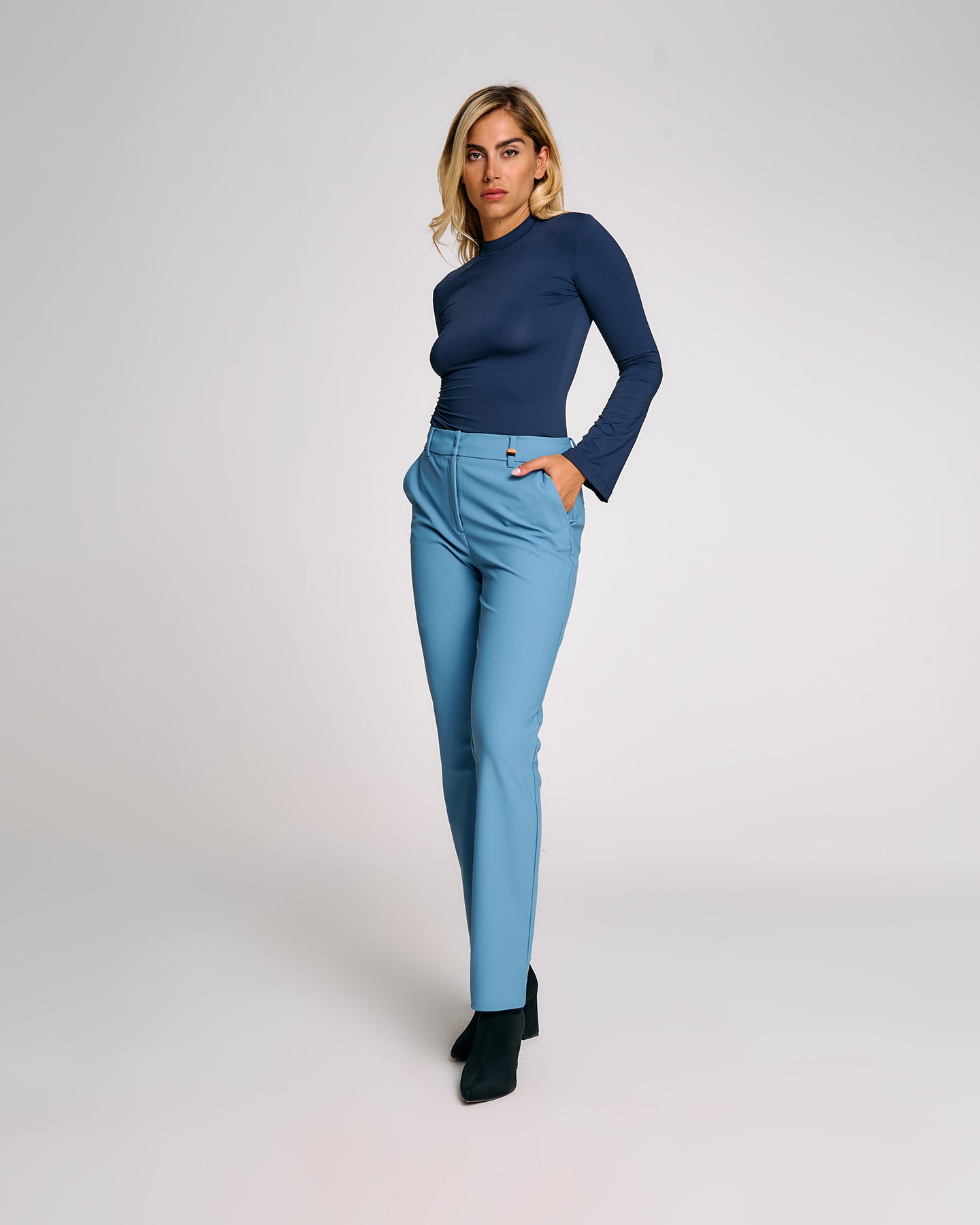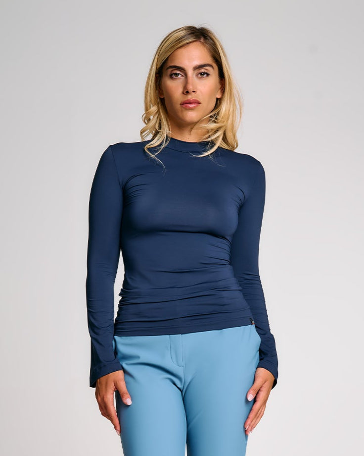 Collo sottile rialzato: discreto, pratico e perfetto da indossare sotto felpe o giacche.