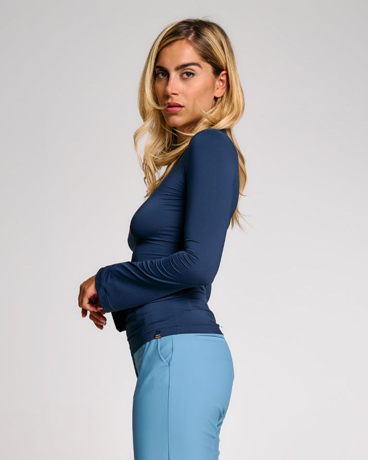 Tessuto leggero e stretch: si adatta ai movimenti e non crea ingombro sotto gli altri capi.