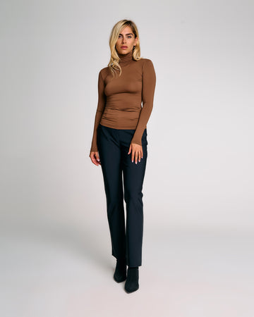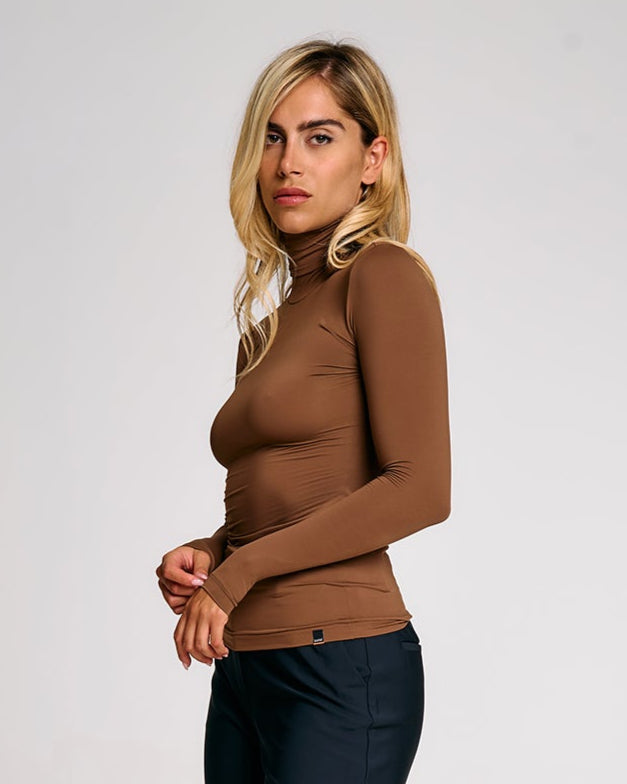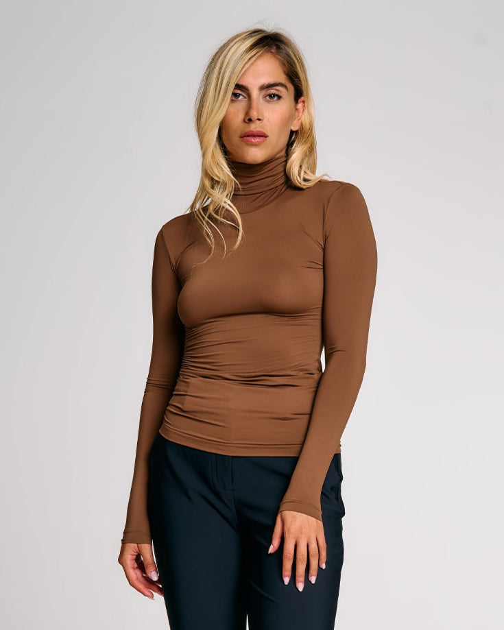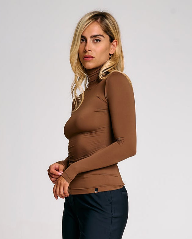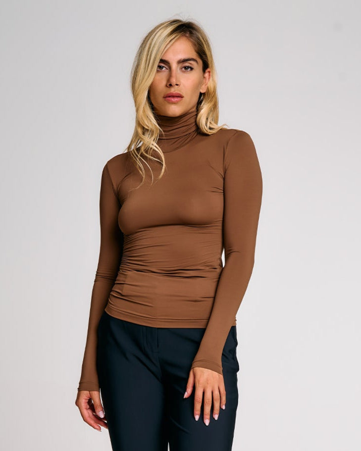 Linee essenziali e taglio pulito per una maglia in jersey elasticizzato che segue la figura con naturalezza. Il collo alto e la vestibilità aderente esaltano la silhouette, mentre il tessuto morbido ed elastico garantisce comfort e libertà di movimento. Perfetta da indossare anche sotto giacche e felpe, è un capo versatile pensato per completare look funzionali e curati durante la stagione fredda.