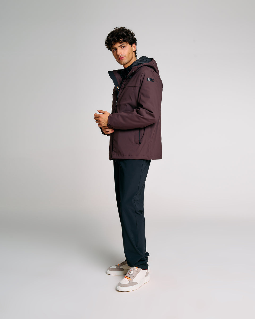 Cappuccio regolabile con stopper: protezione su misura contro vento e pioggia.
