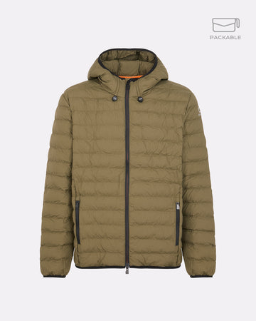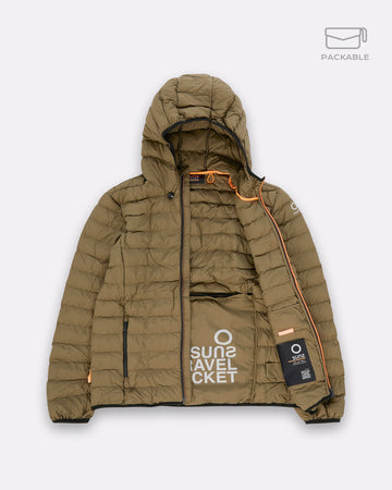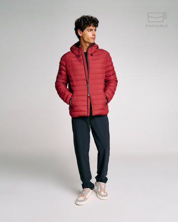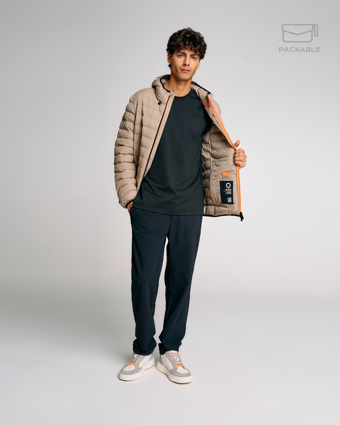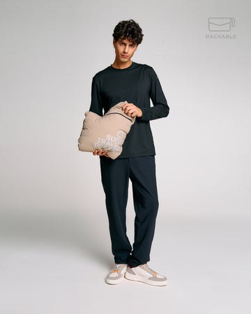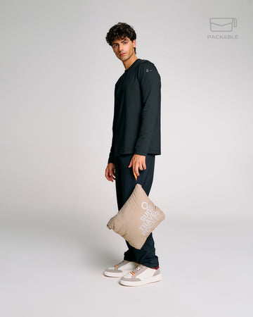 Un giubbotto trapuntato da uomo progettato per affrontare con stile e praticità la mezza stagione. Il modello Bape Travel, parte della linea Travel, è richiudibile in una pochette integrata, perfetto per accompagnarti ovunque. L’imbottitura Thermolite da 180g offre il giusto equilibrio tra calore e leggerezza. Il cappuccio regolabile con coulisse e stopper personalizzato assicura una copertura ottimale, mentre la zip waterproof bicolore aggiunge un tocco tecnico e distintivo. Completano il design le tasche laterali con chiusura zip, i fondi e polsini elasticizzati e il logo reflective Suns sulla manica.