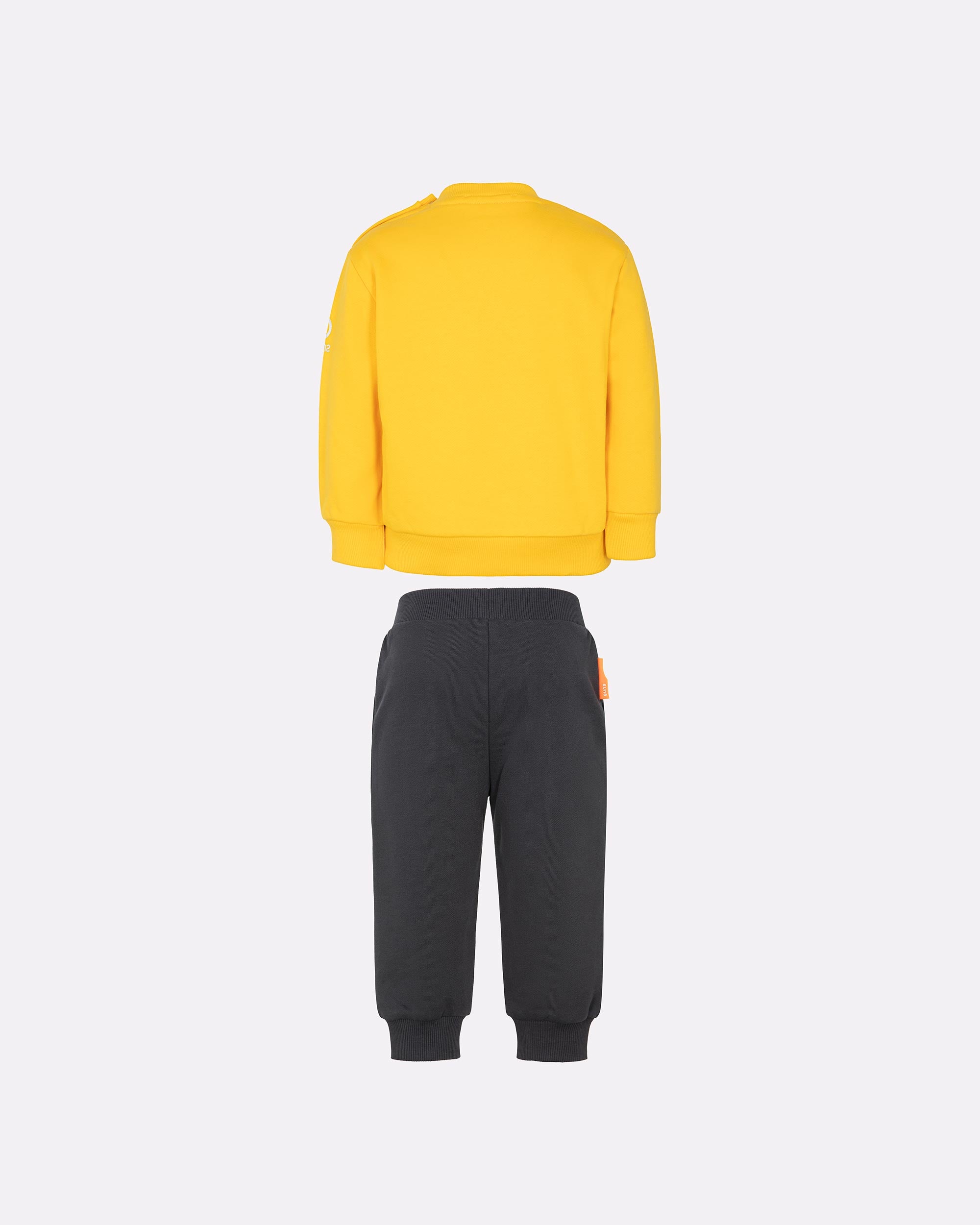Un completo bambino in felpa comodo e colorato, perfetto per accompagnare ogni movimento quotidiano. La felpa a girocollo presenta una stampa Suns Boards sul davanti, valorizzata da un'originale grafica circolare. Il pantalone, in tinta scura a contrasto, completa il look con un design pratico e dettagli funzionali. Il risultato è un outfit dinamico e facile da indossare, ideale per scuola, gioco e tempo libero.