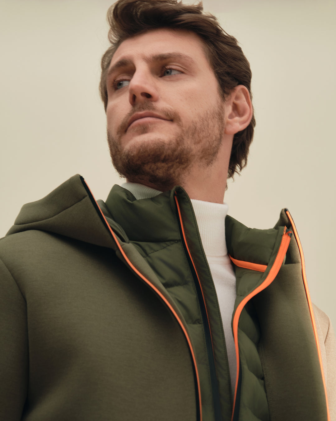 • Cappuccio fisso strutturato: protezione e design architettonico.