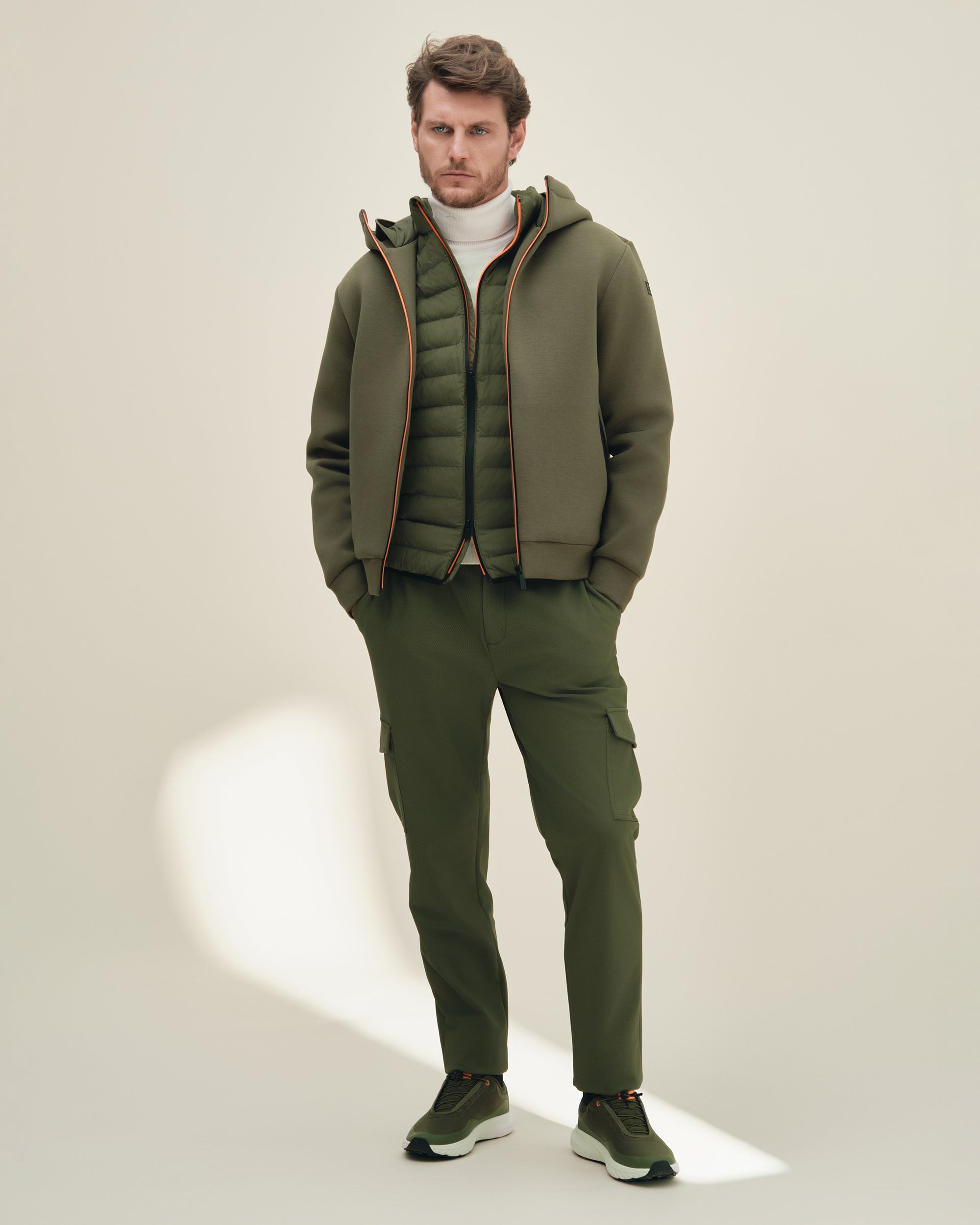 • Tessuto tecnico confortevole: morbido e compatto al tatto.