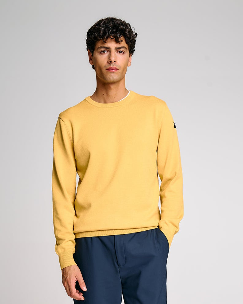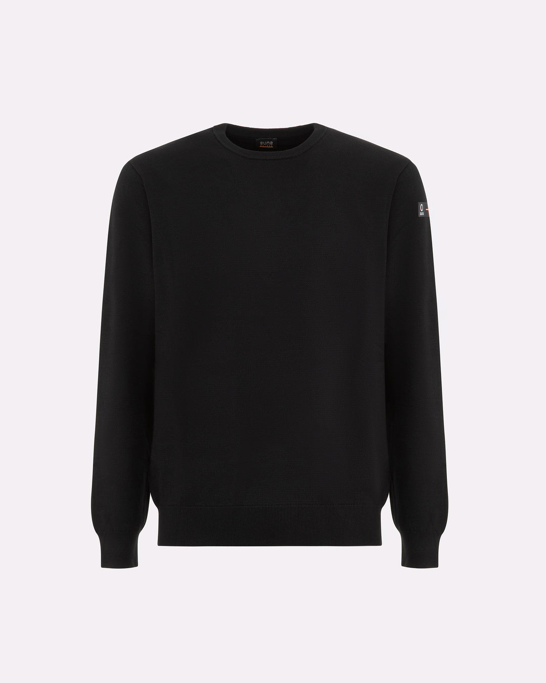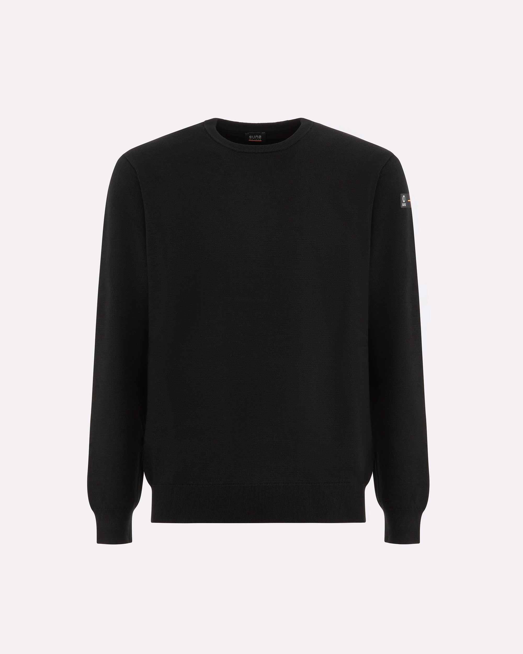 Un maglione girocollo da uomo pensato per offrire massima versatilità e comfort quotidiano. La struttura in filato fine lo rende leggero e piacevole da indossare, mentre la vestibilità regolare garantisce libertà nei movimenti. I fondi e polsini a costine assicurano una tenuta perfetta durante tutta la giornata. Il dettaglio del logo applicato sulla manica aggiunge un tocco di riconoscibilità al design essenziale.