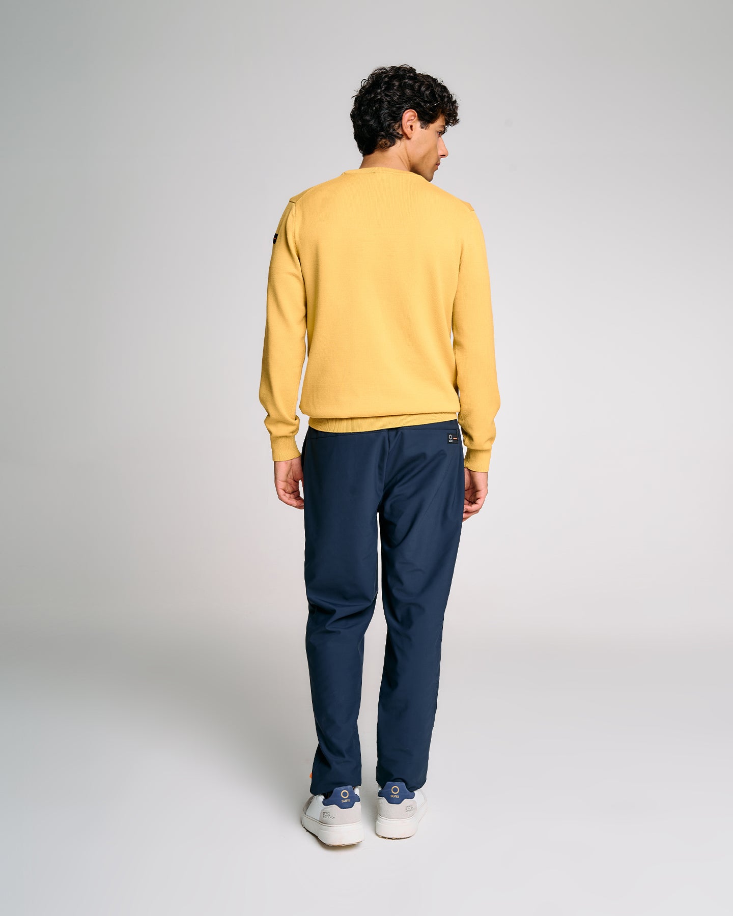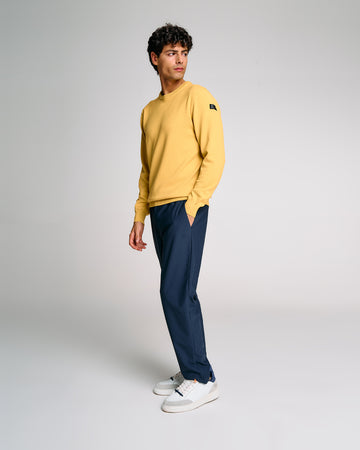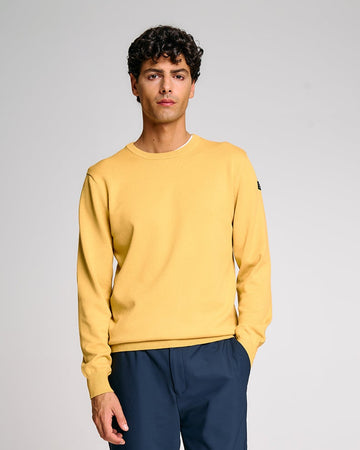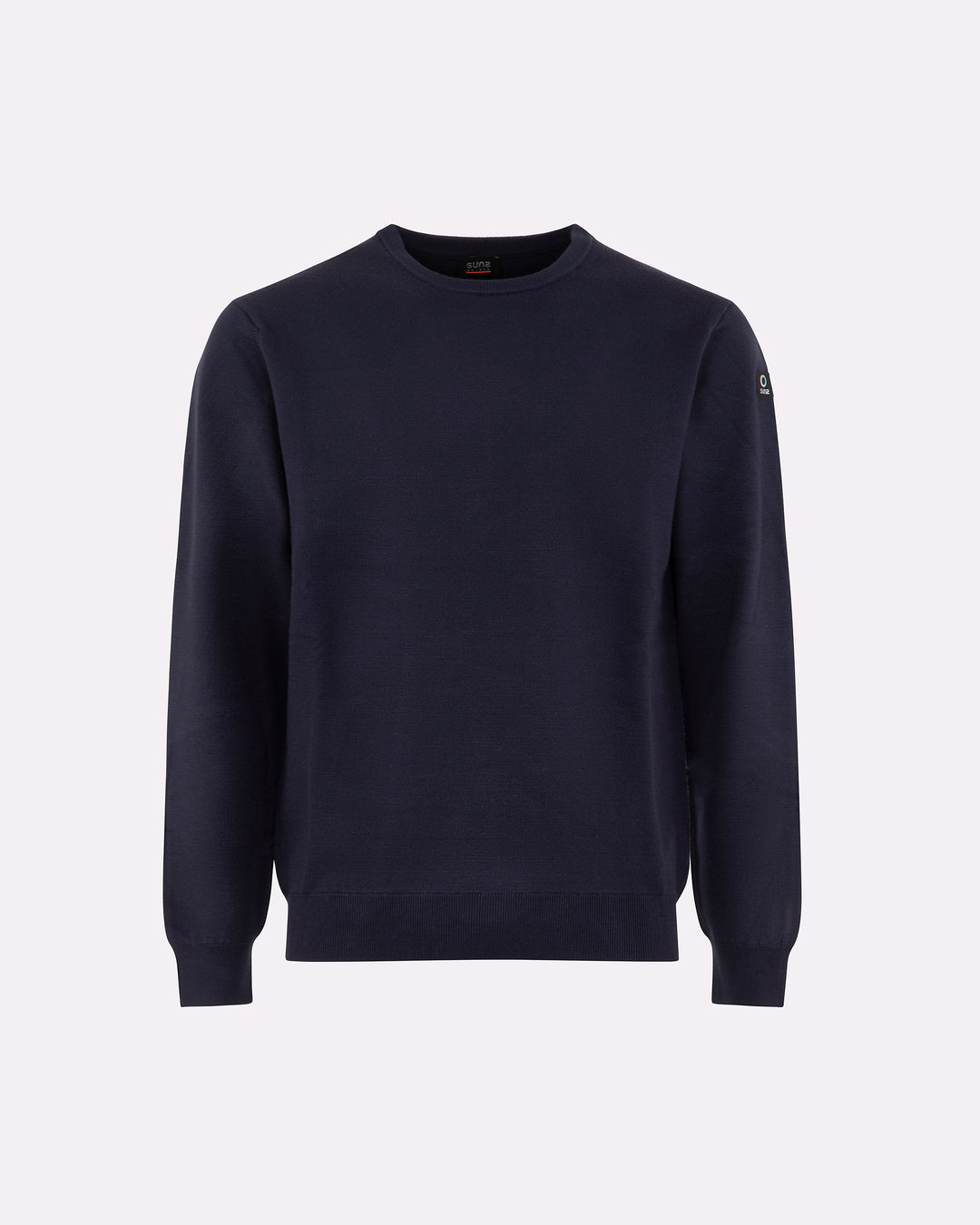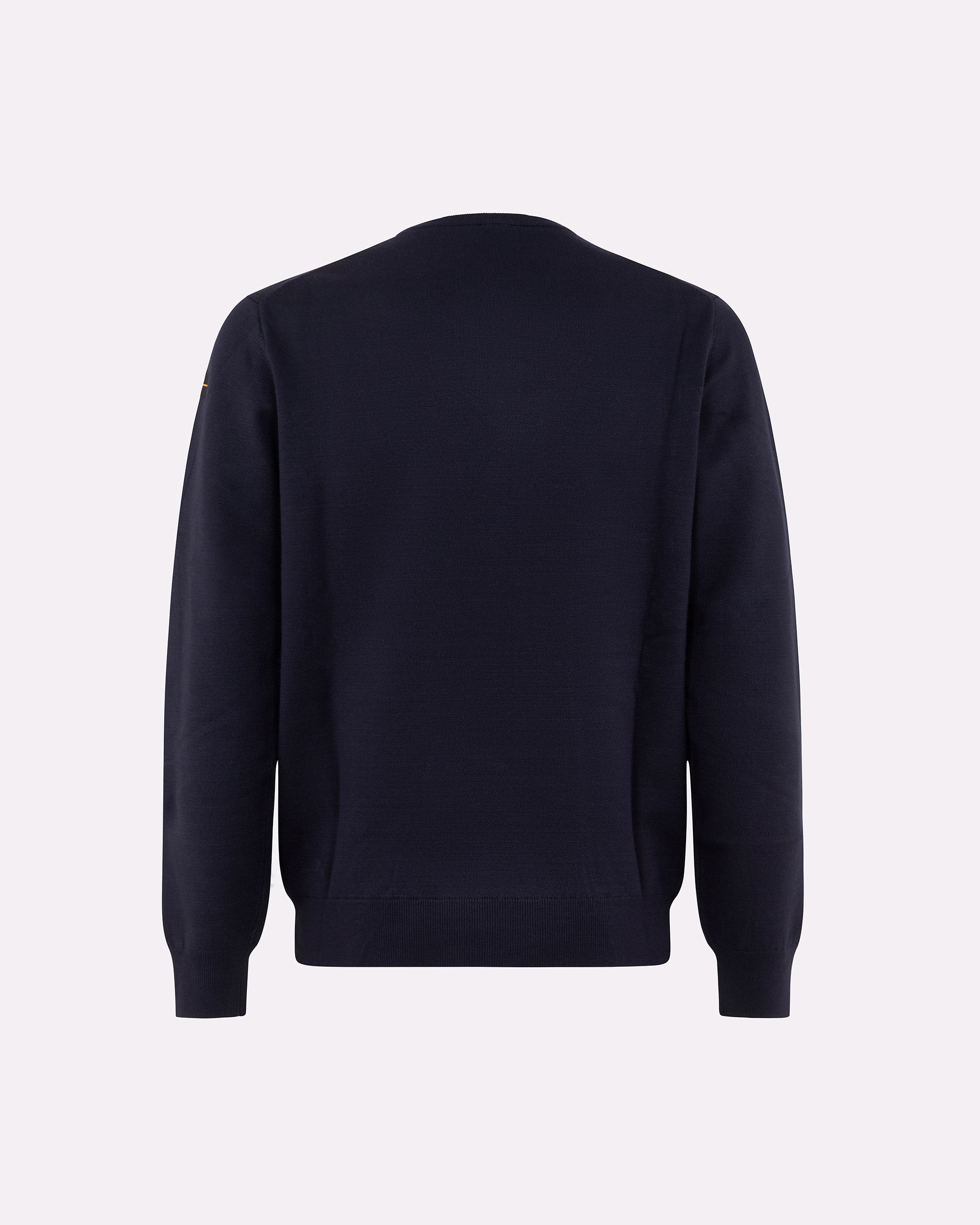 Un maglione girocollo da uomo pensato per offrire massima versatilità e comfort quotidiano. La struttura in filato fine lo rende leggero e piacevole da indossare, mentre la vestibilità regolare garantisce libertà nei movimenti. I fondi e polsini a costine assicurano una tenuta perfetta durante tutta la giornata. Il dettaglio del logo applicato sulla manica aggiunge un tocco di riconoscibilità al design essenziale.