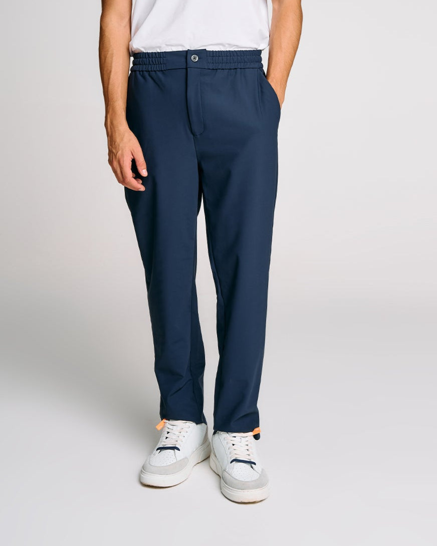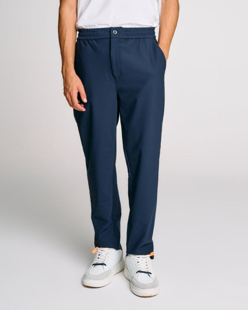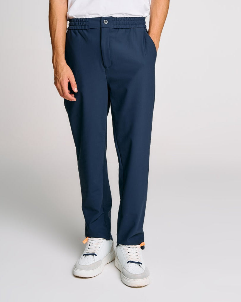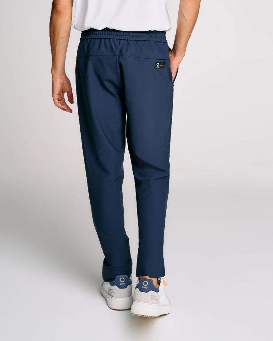 Questo pantalone tecnico da uomo unisce uno stile pulito a una struttura funzionale, ideale per chi cerca praticità e comfort. Il design essenziale è arricchito da una vita elasticizzata con bottone frontale e da un fondo risvoltato con cucitura che ne valorizza la linea. Completano il capo le tasche chino anteriori e una tasca posteriore con zip invisibile, per un’estetica sobria e moderna. Il logo Suns sul retro aggiunge un tocco distintivo.
