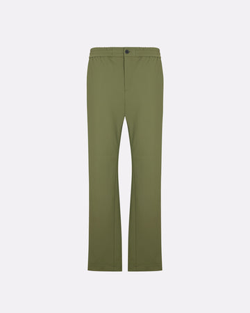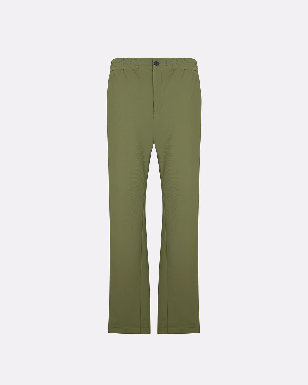 Vita elasticizzata con bottone: praticità e comfort in un unico dettaglio.