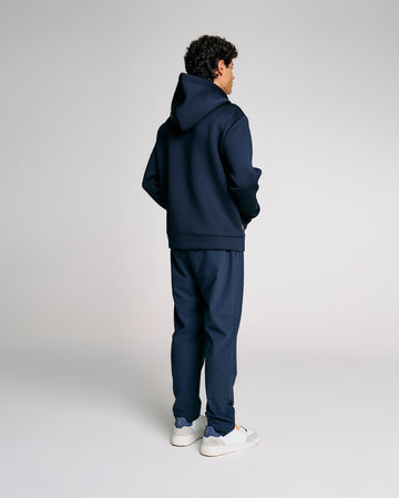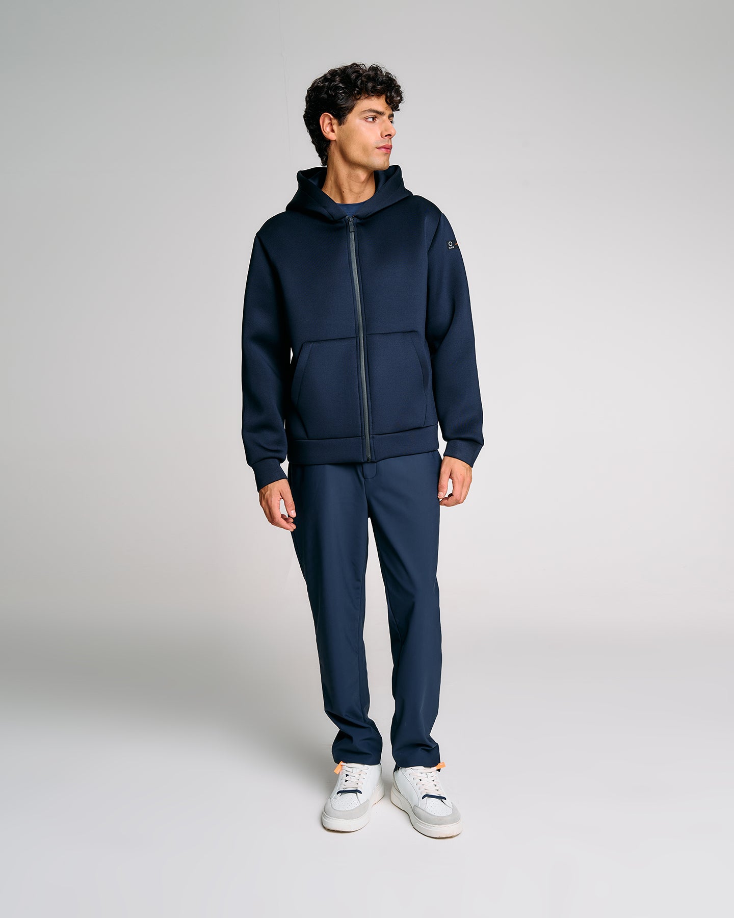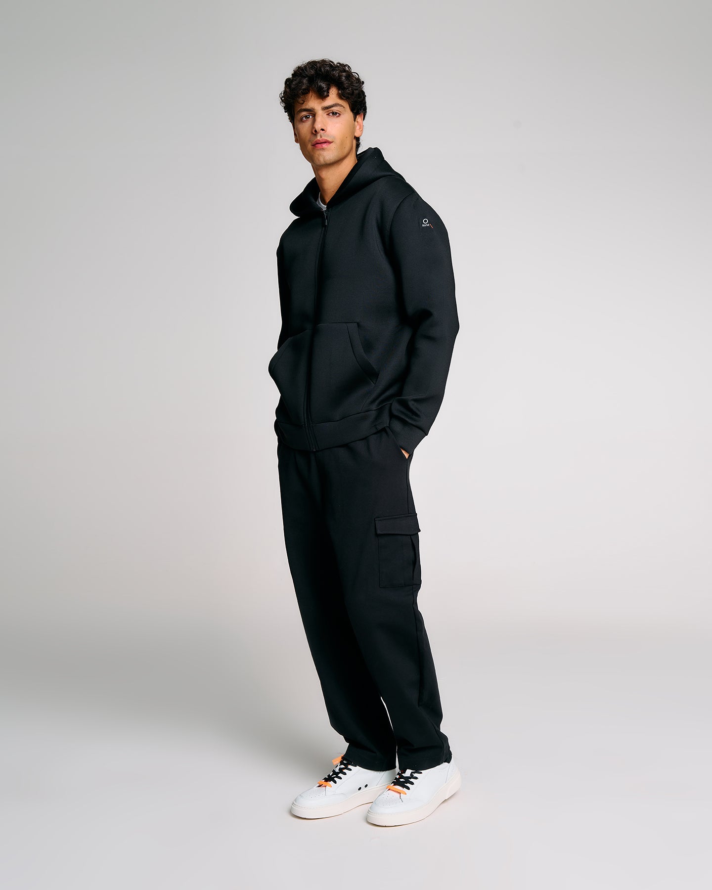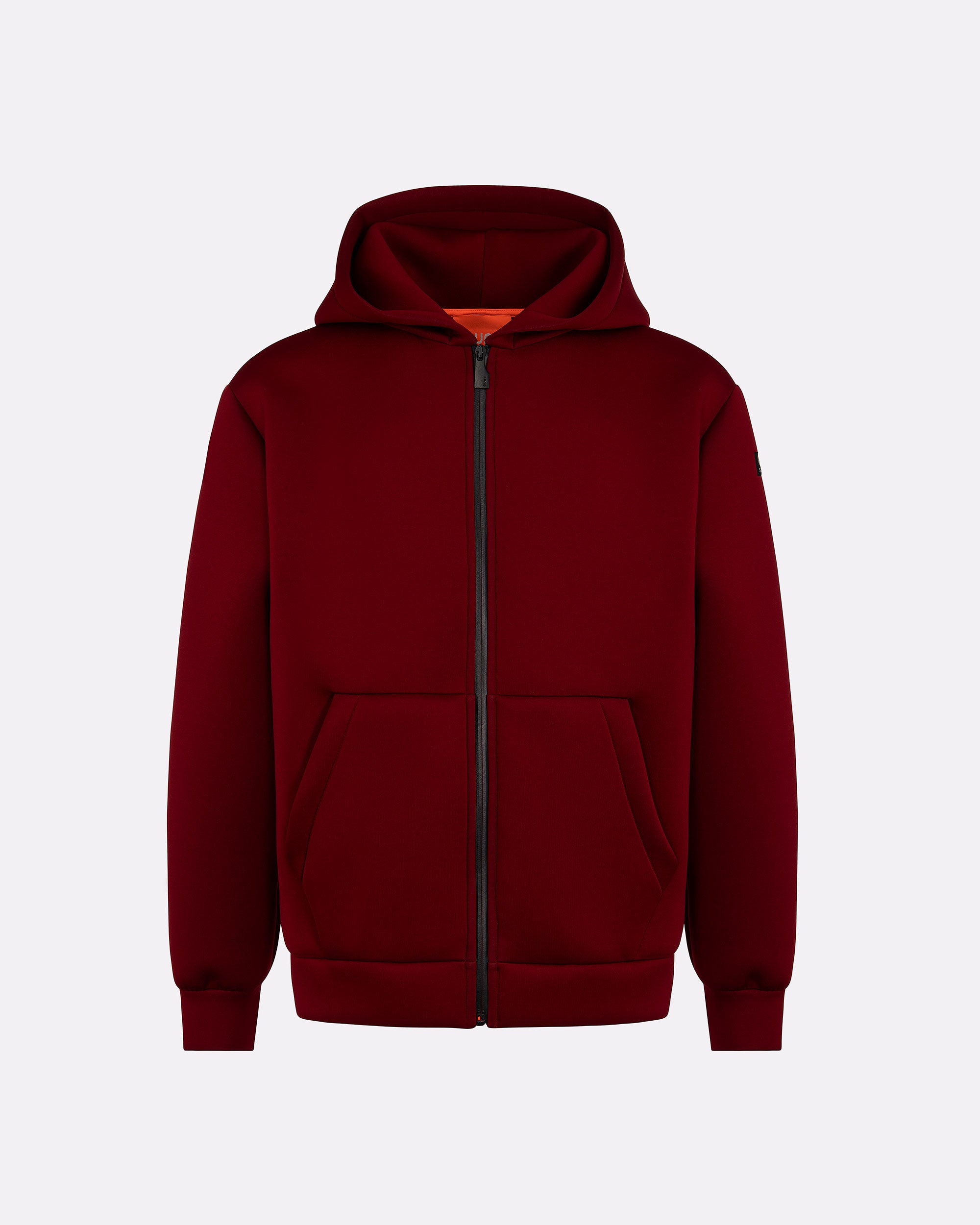Felpa da uomo con cappuccio dal design funzionale e contemporaneo. Il modello presenta una struttura ergonomica con lavorazione speciale su spalle e fianchi che migliora comfort e mobilità. Il tessuto tecnico compatto garantisce una tenuta strutturata e un look deciso, ideale per affrontare la quotidianità con stile. La chiusura frontale con zip waterproof nera si abbina perfettamente al design pulito, mentre la tasca marsupio anteriore aggiunge praticità. Completano il capo il cappuccio regolabile, il parasudore arancione fluo interno e la pinnetta arancio in silicone come dettaglio firmato Suns.