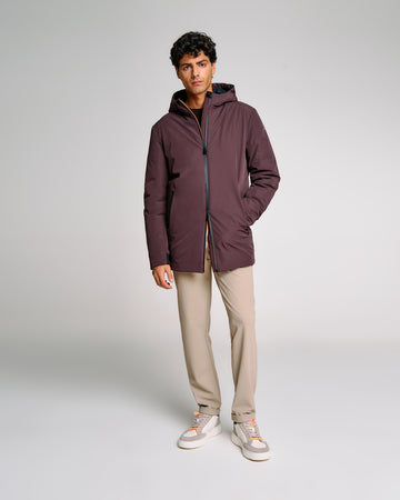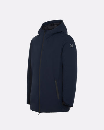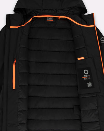 Un giubbotto tecnico da uomo dal design pulito e dalla funzionalità avanzata. Il tessuto idrorepellente e l'imbottitura in Thermolite assicurano isolamento e leggerezza. Il cappuccio fisso, la zip waterproof bicolore con lato interno arancione e i polsini in neoprene offrono protezione completa dalle intemperie. La lunghezza estesa lo distingue per praticità e stile, mentre la pinnetta arancione fluo sul fianco destro richiama l'identità dinamica del brand.