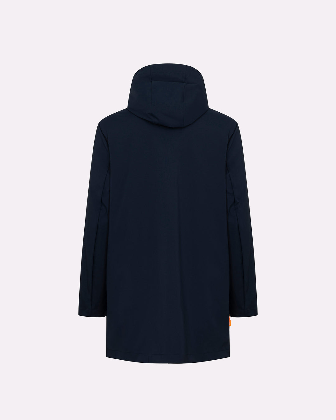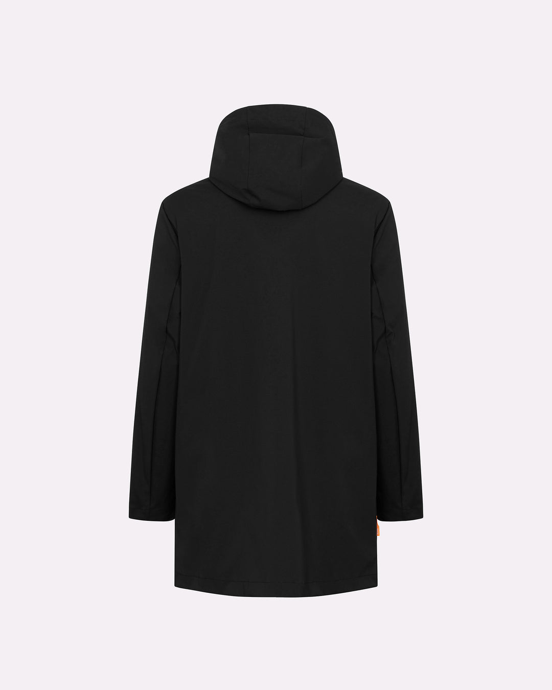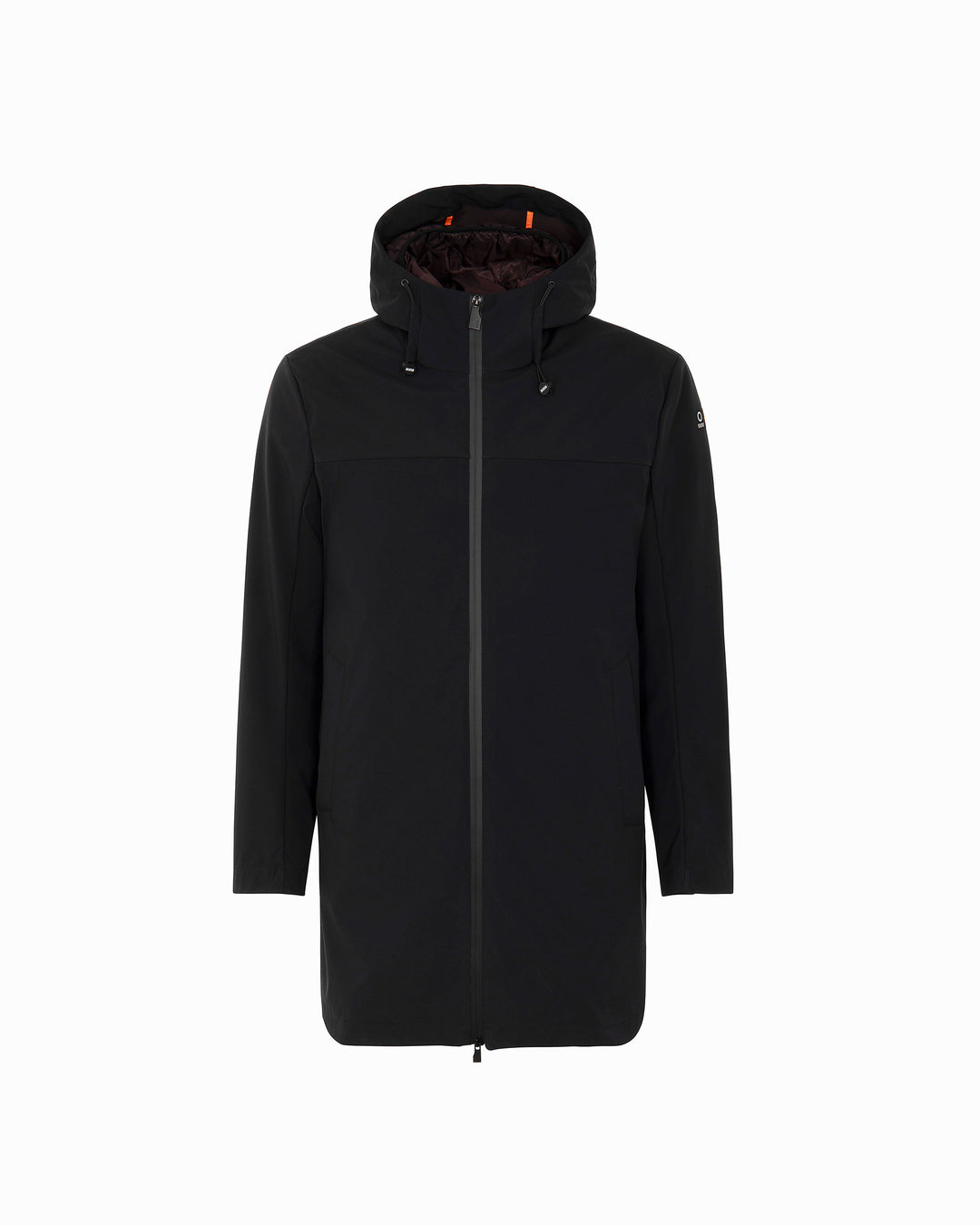 Esterno lungo in tessuto tecnico: look minimal e protezione avanzata.